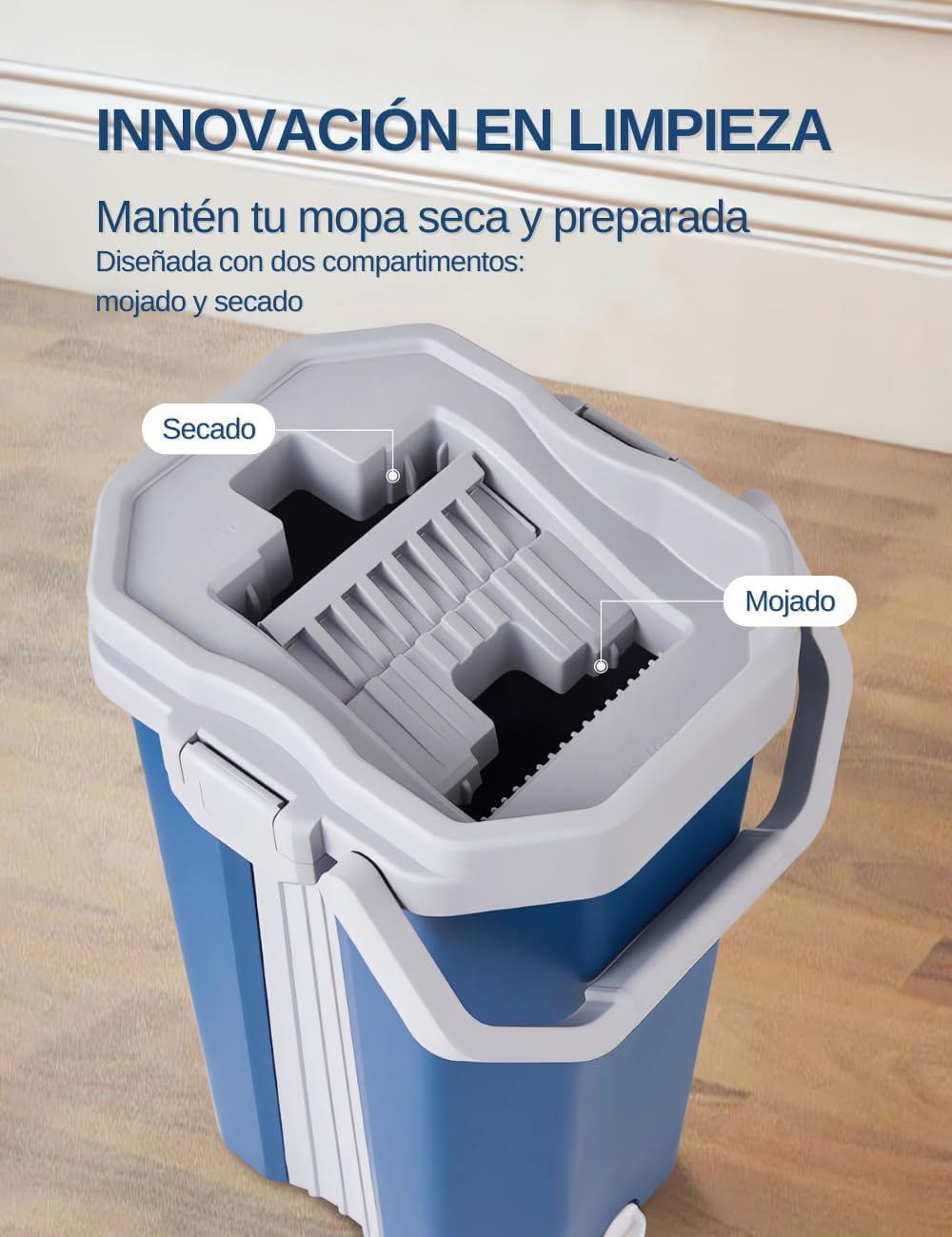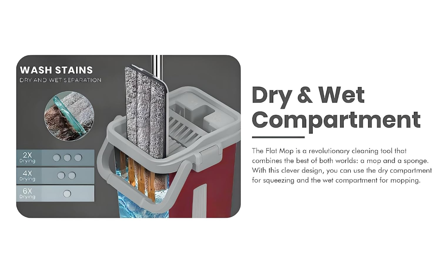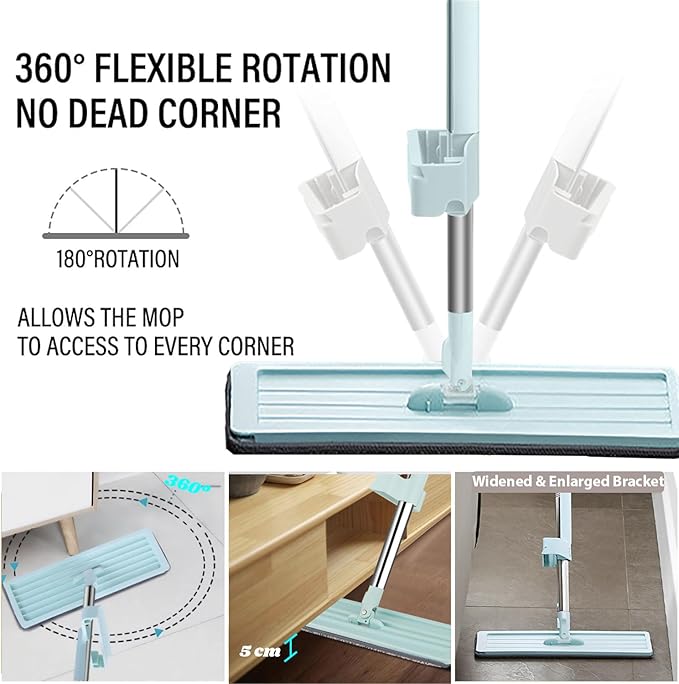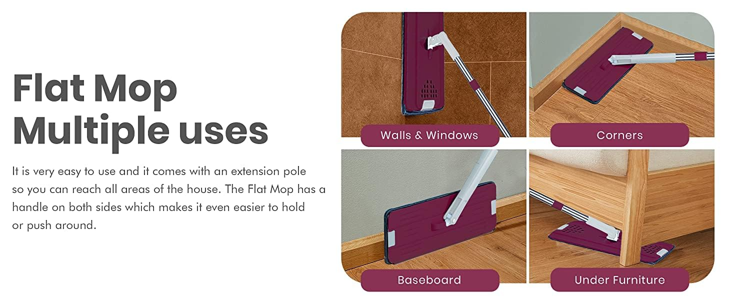 The ergonomic, adjustable mop handle allows for upright cleaning without bending or straining your back—perfect for users of all heights.