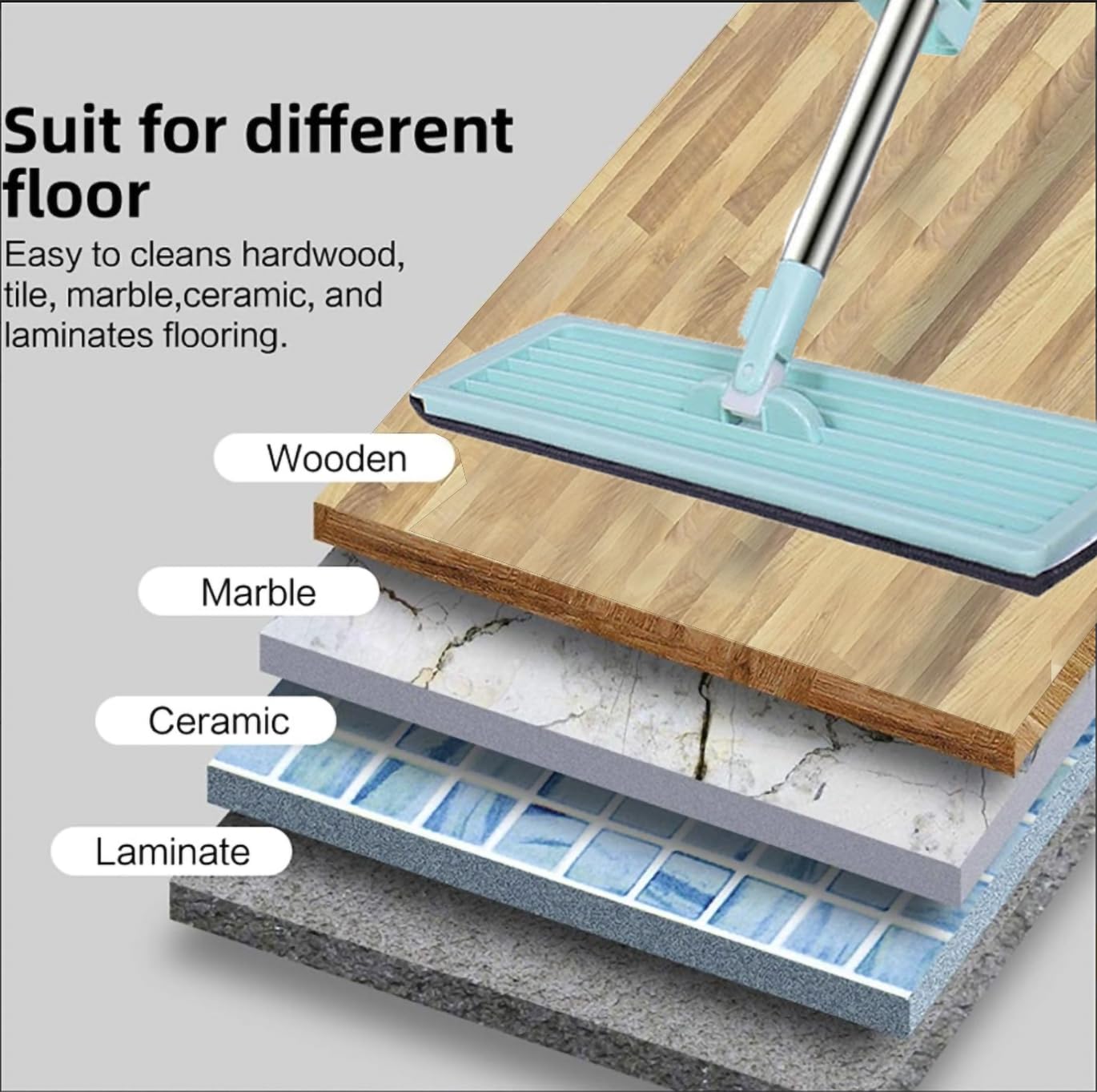 Gentle on all types of flooring—tile, wood, laminate, vinyl—providing a safe, healthy, and scratch-free cleaning experience.