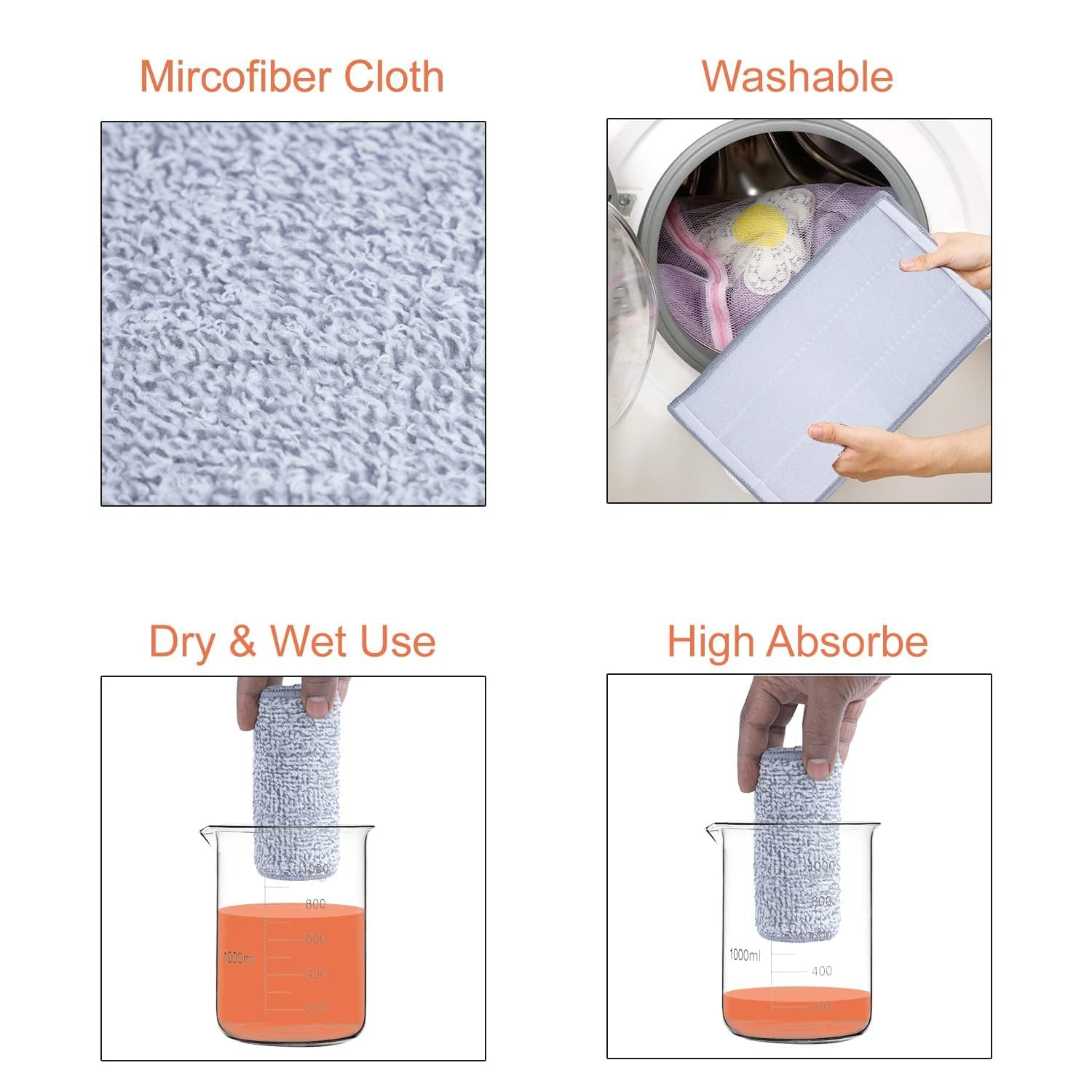 Includes washable and reusable microfiber mop heads that effectively trap dirt, dust, and moisture while saving money and reducing waste.