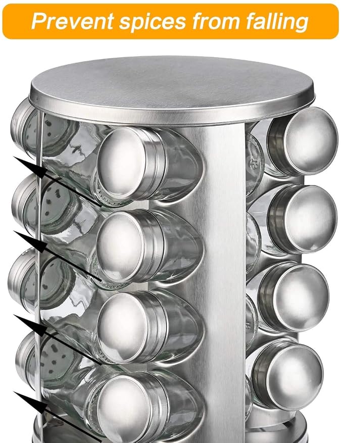 The spice rack features a smooth-spinning rotating base that allows you to access any jar with a simple turn. Whether you're cooking a quick meal or preparing a feast, your spices are always within reach.