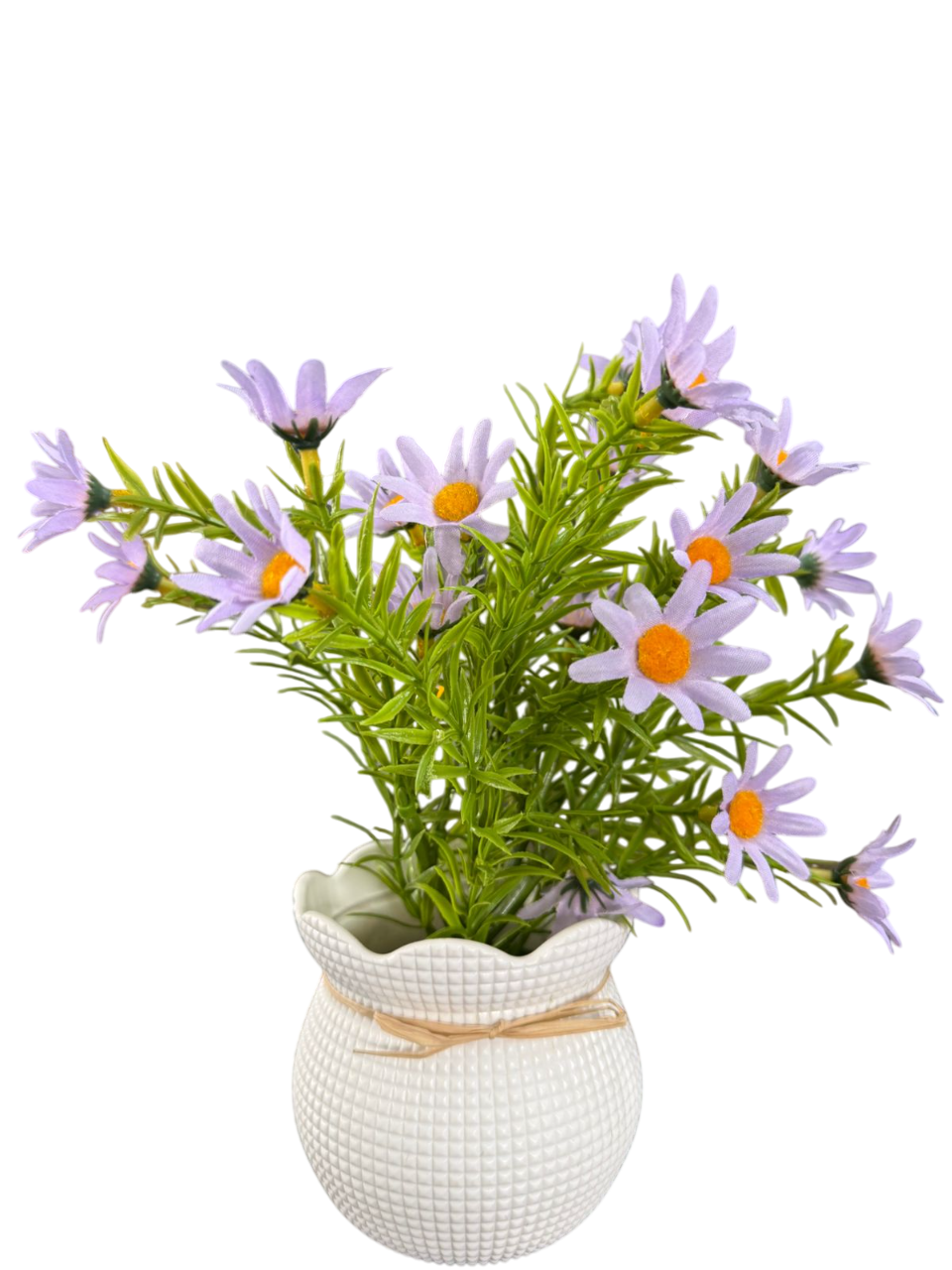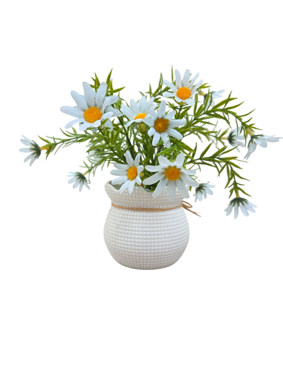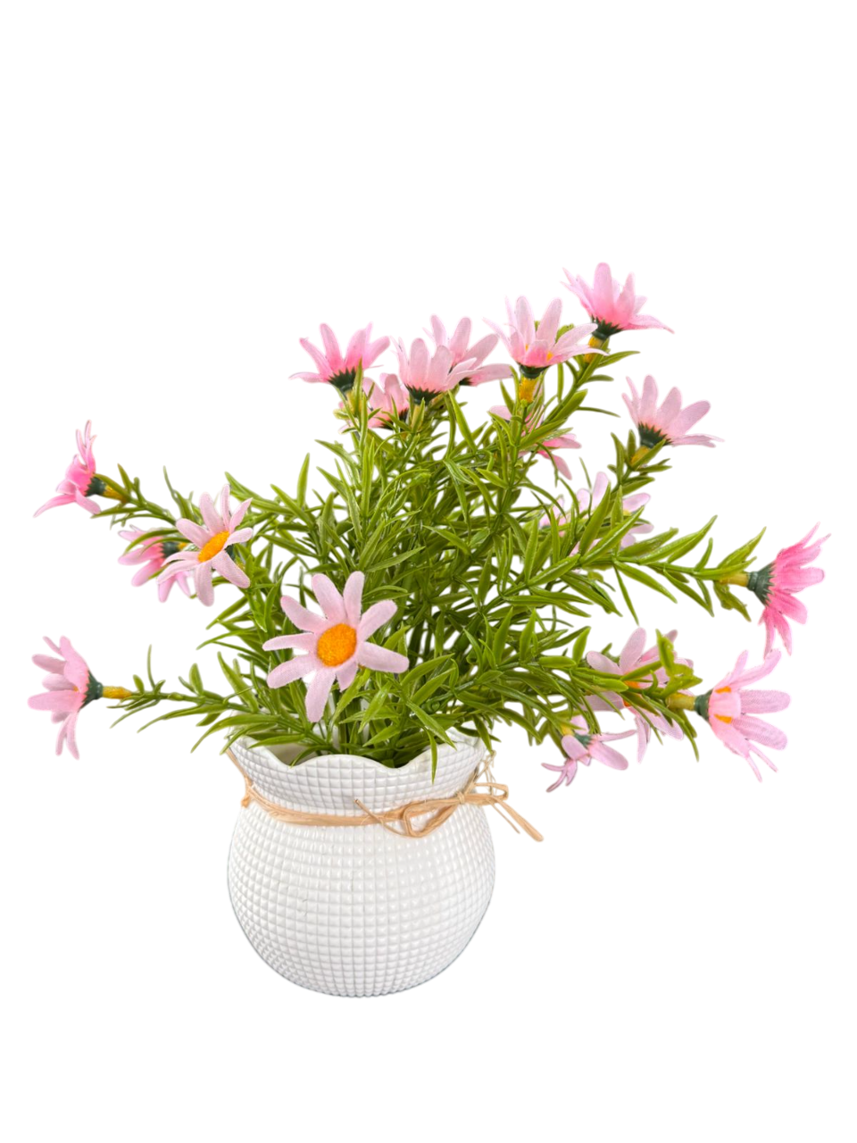 • Decorative Pot: White textured pot with rope bow and wooden “Home Sweet Home” tag for rustic charm.