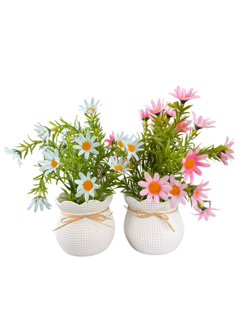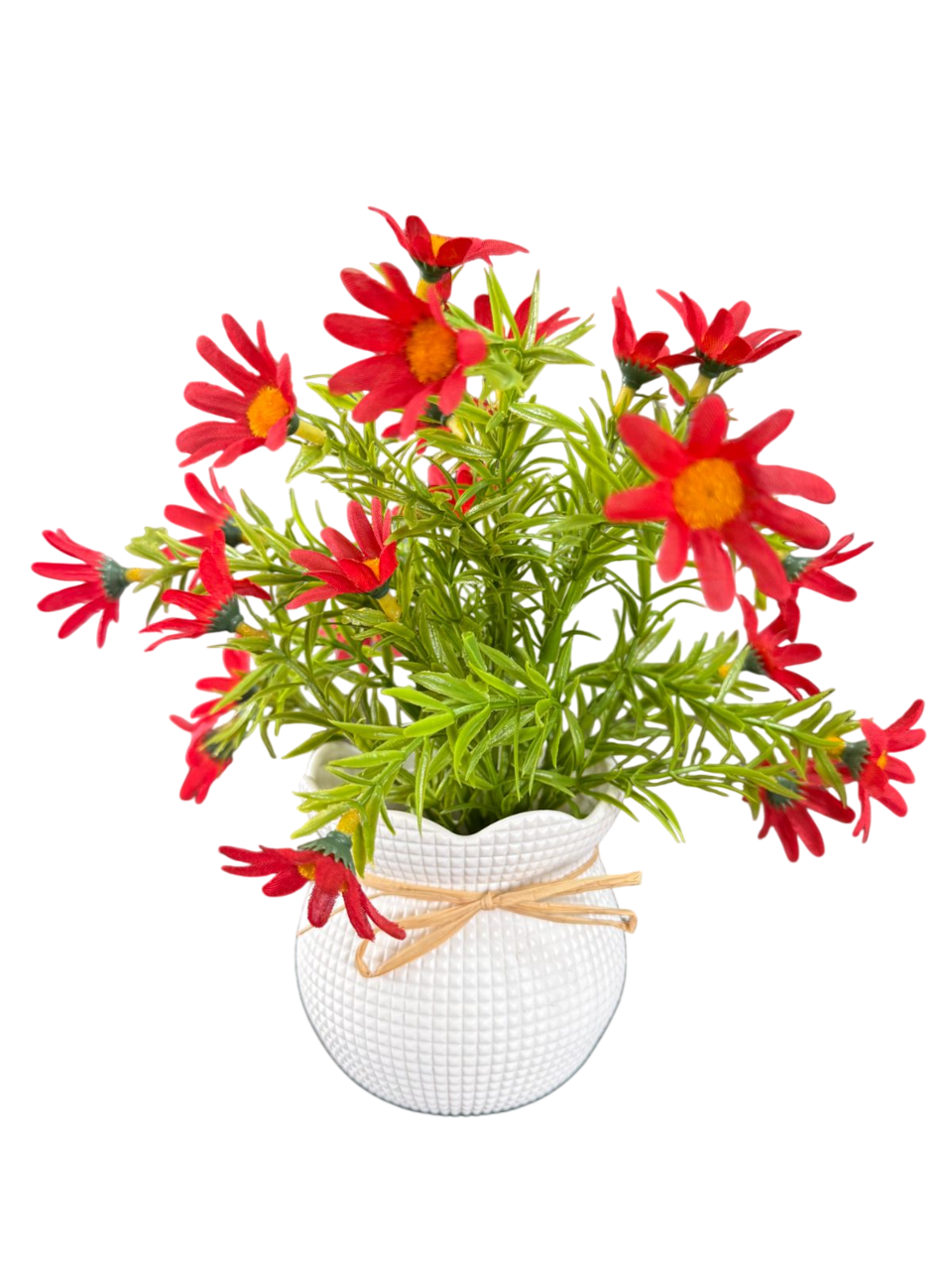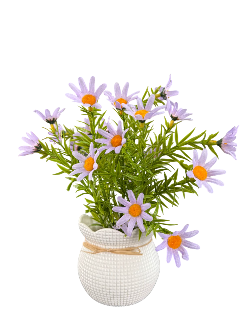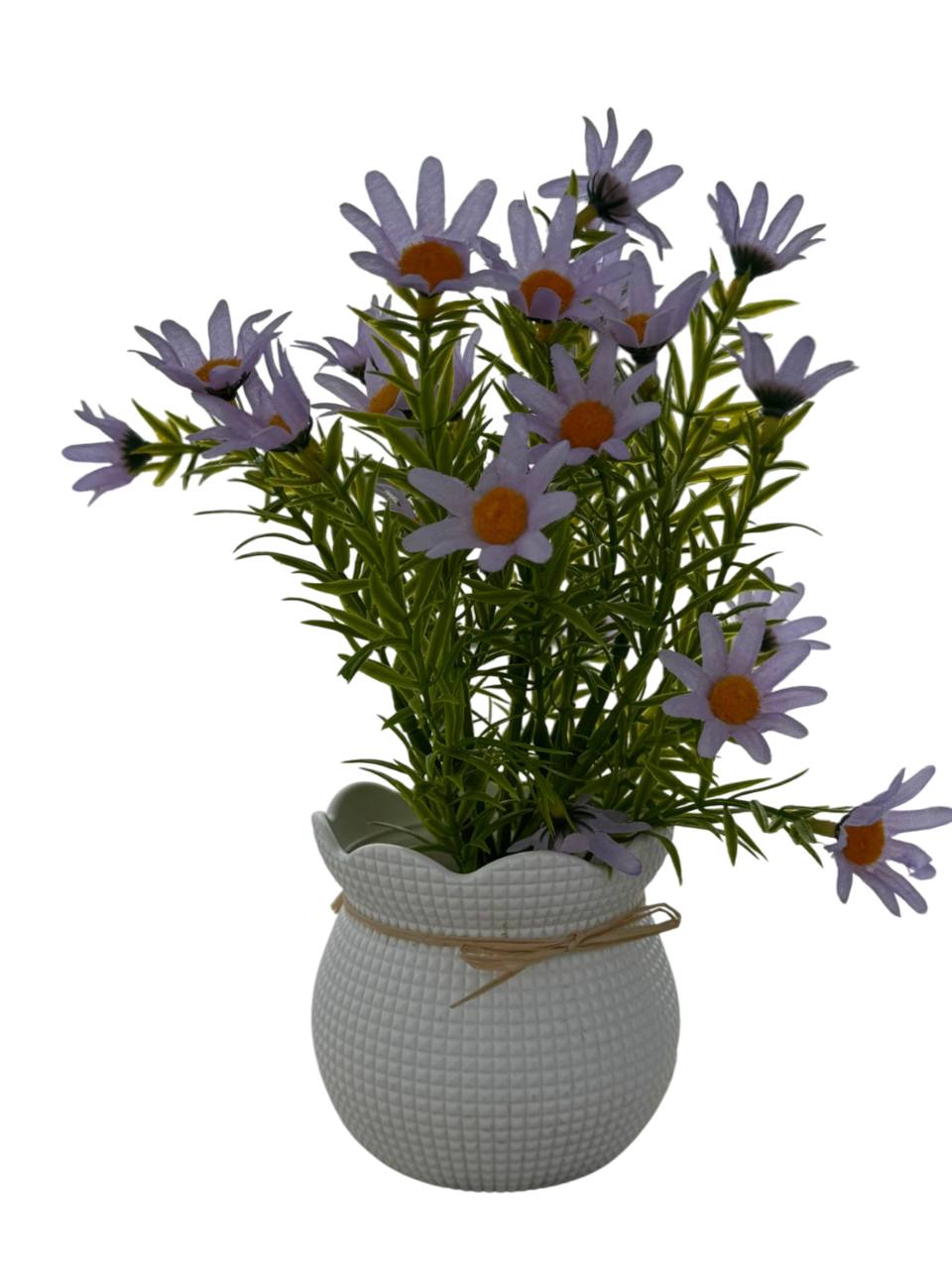 • Decorative Pot: White textured pot with rope bow and wooden “Home Sweet Home” tag for rustic charm.