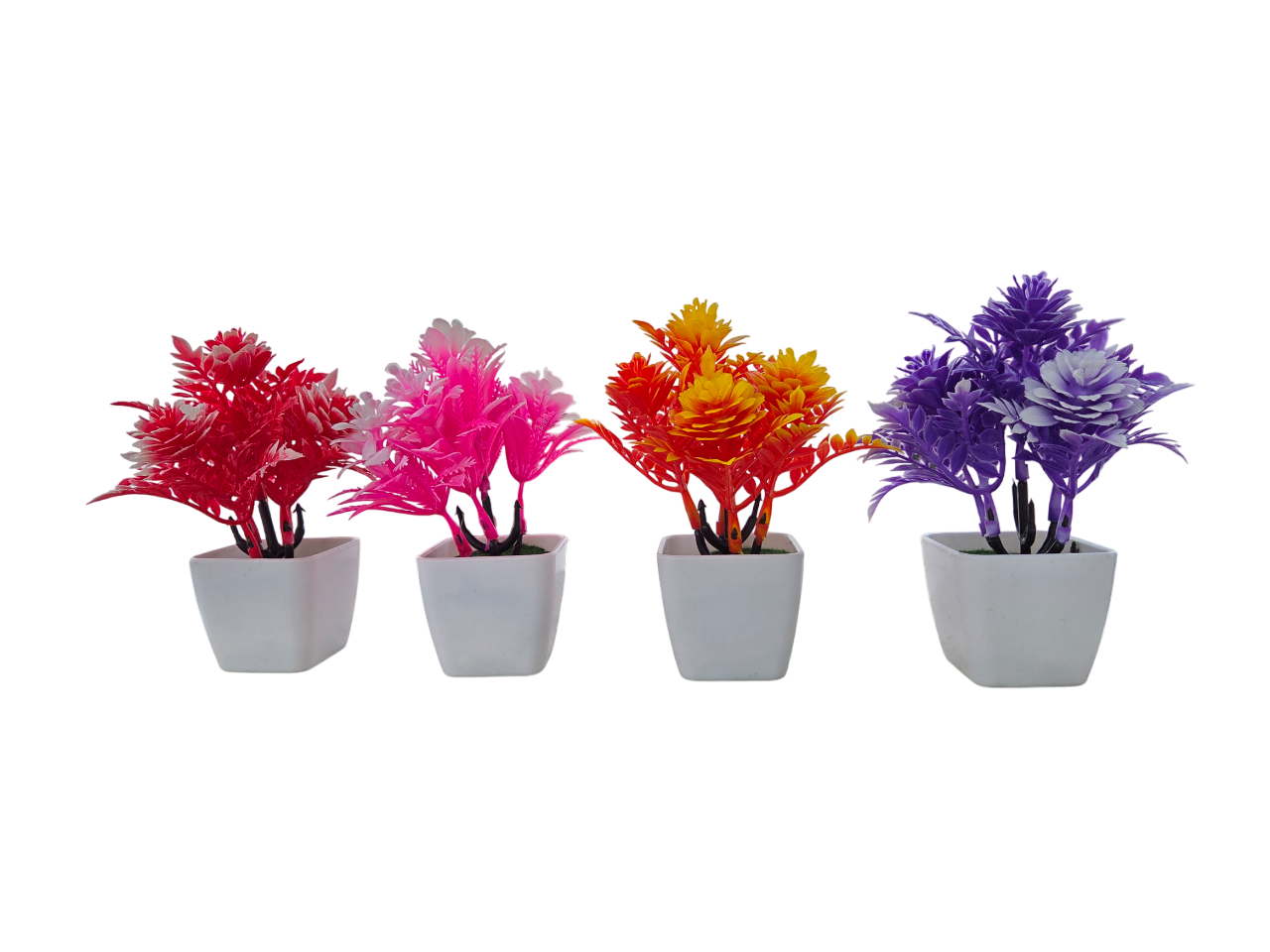 • ✔ Set of 4 Artificial Plants: Includes a variety of colorful, lifelike succulents and floral arrangements in minimalist white pots.