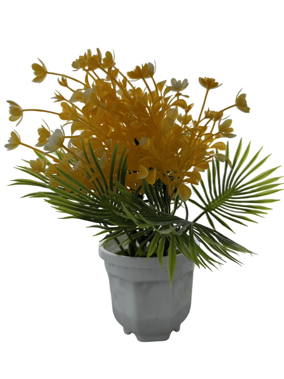 • Vibrant Yellow Blooms: Bright and realistic lavender-style flowers with lush green foliage.